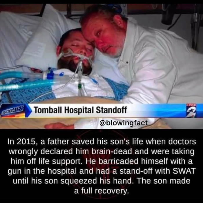 의사가 실수로 뇌사판정을 내린 아들의 생명유지장치를 떼려는 걸 막기위해
