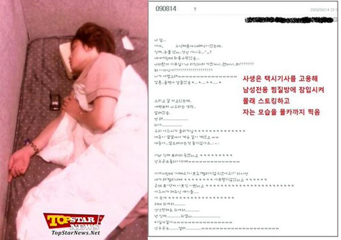 숙소 몰래 들어와서 자는 사진 찍고 미니홈피에 게시